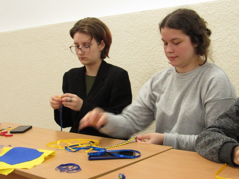 Окрім ляльок-оберегів плели студенти і патріотичні синьо-жовті браслети.