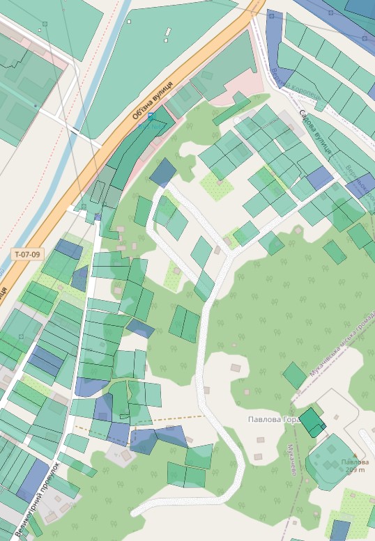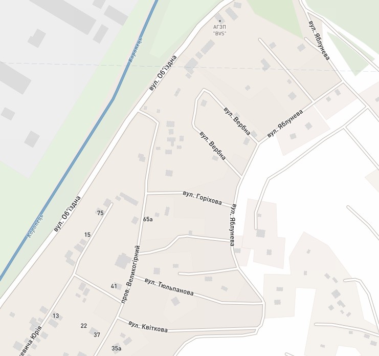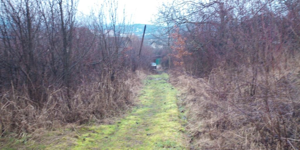 Це третя вулиця з нашого дослідження дачного масиву Павлової гори. На цей раз, щоб потрапити сюди, треба заїхати з вулиці Об’їздної, між заправкою WOG та «Пауш-бетон». Карти показують, що цей заїзд приведе нас до щонайменше чотирьох вулиць мукачівської громади. Виявилося, що слово вулиці звучить дуже оптимістично у відношенні до цих шляхів. Тобто покриття тут немає ніякого – просто ґрунт (глина). І не всюди можна проїхати навіть позашляховиком, бо вони звужуються до стежки. До кінця вулиці Яблуневої ми не ризикнули дійти, бо там вже навіть стежка були розмита і заросла колючим чагарником. Спробуємо ще раз за сухої погоди.