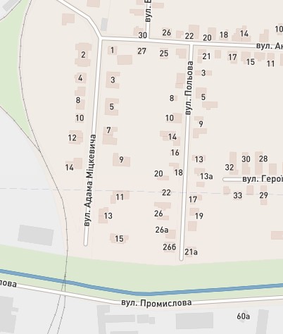 Вулиця Міцкевича знаходиться у Борок-Телепі. Вона тупикова, починається з вулиці Шаша і впирається у Коропецький канал. Перед нею є ще паралельна Польова, про неї ми писали у попередньому матеріалі.